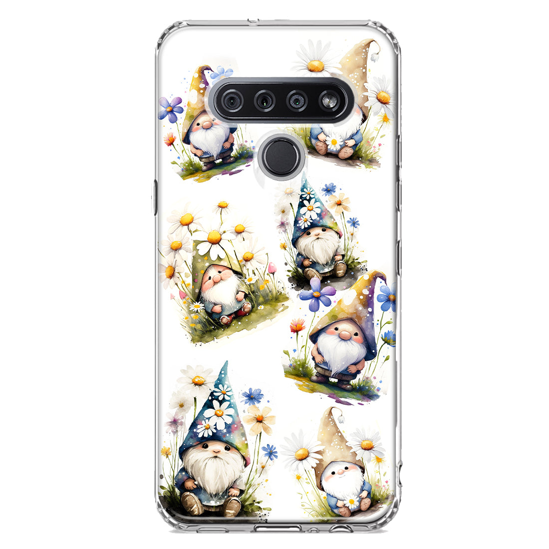 For LG K51 Cute White Blue Daisies Gnomes Design Hybrid Protective Phone Case Cover