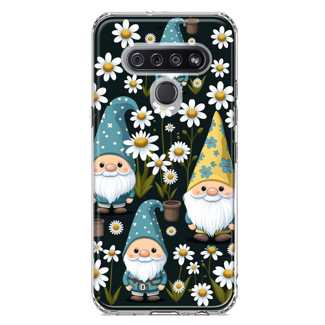 For LG K51 Cute White Daisies Gnomes Flowers Floral Double Layer Phone Case Cover