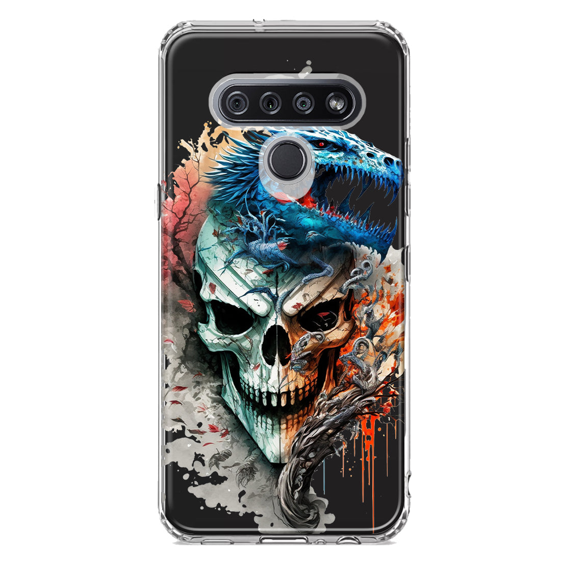 For LG K51 Fantasy Blue Dragon Dream Skull Double Layer Phone Case Cover