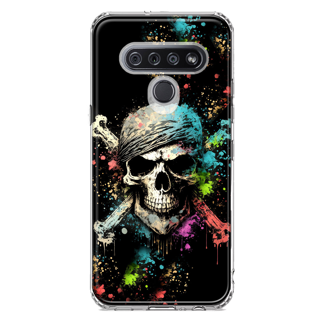 For LG K51 Fantasy Paint Splash Pirate Skull Design Hybrid Protective Phone Case Cover