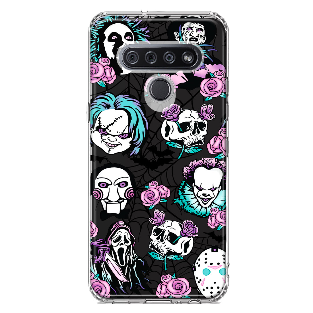 For LG K51 Halloween Skeleton Heart Hands Spooky Spider Web Design Hybrid Protective Phone Case Cover