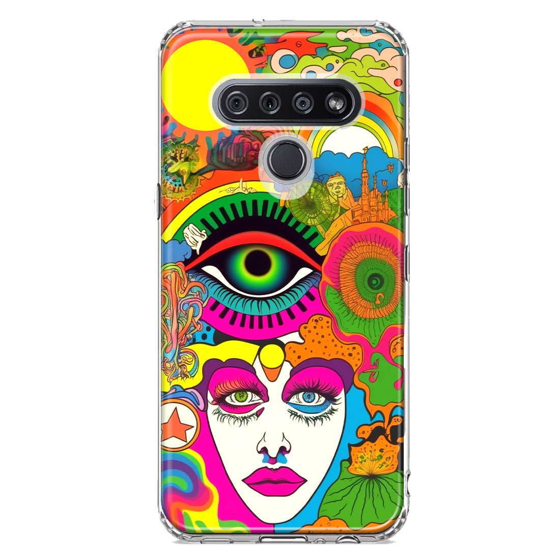 For LG K51 Neon Rainbow Psychedelic Trippy Hippie Daydream Design Hybrid Protective Phone Case Cover