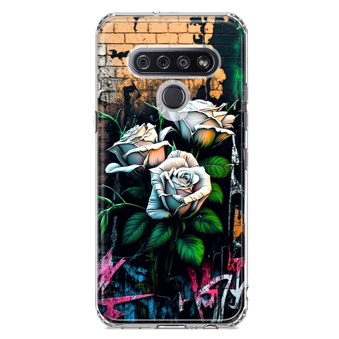 For LG K51 White Roses Graffiti Wall Art Painting Design Hybrid Protective Phone Case Cover