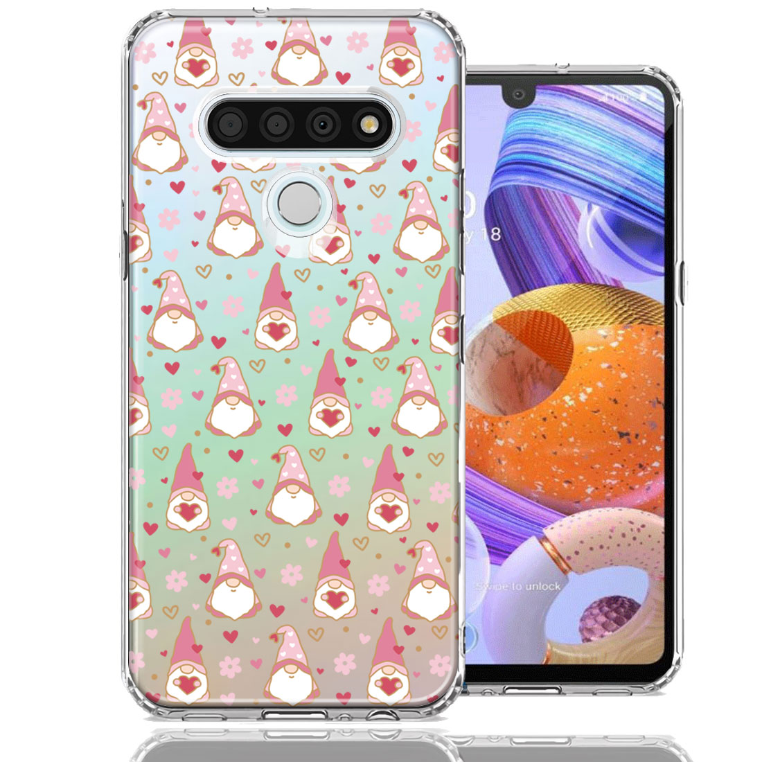 For LG Stylo 6 Pink Blush Valentines Day Flower Hearts Gnome Characters Cute Double Layer Phone Case Cover