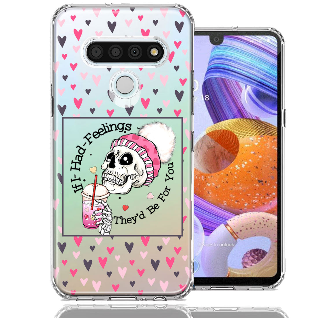 For LG Stylo 6 Pink Dead Valentine Skull Frap Hearts If I had Feelings They'd Be For You Love Double Layer Phone Case Cover