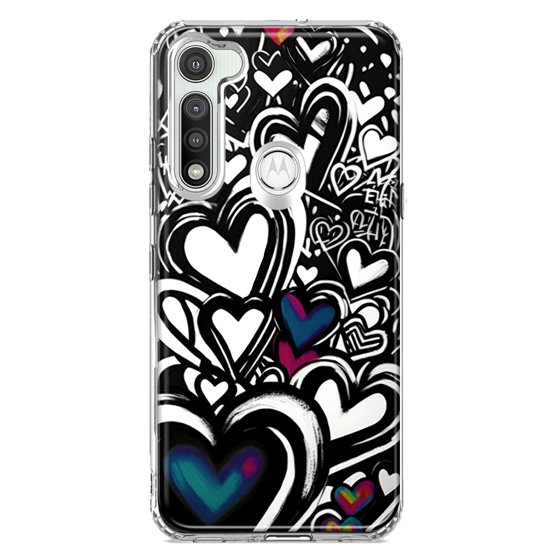 For Motorola Moto G Fast Black White Hearts Love Graffiti Design Hybrid Protective Phone Case Cover