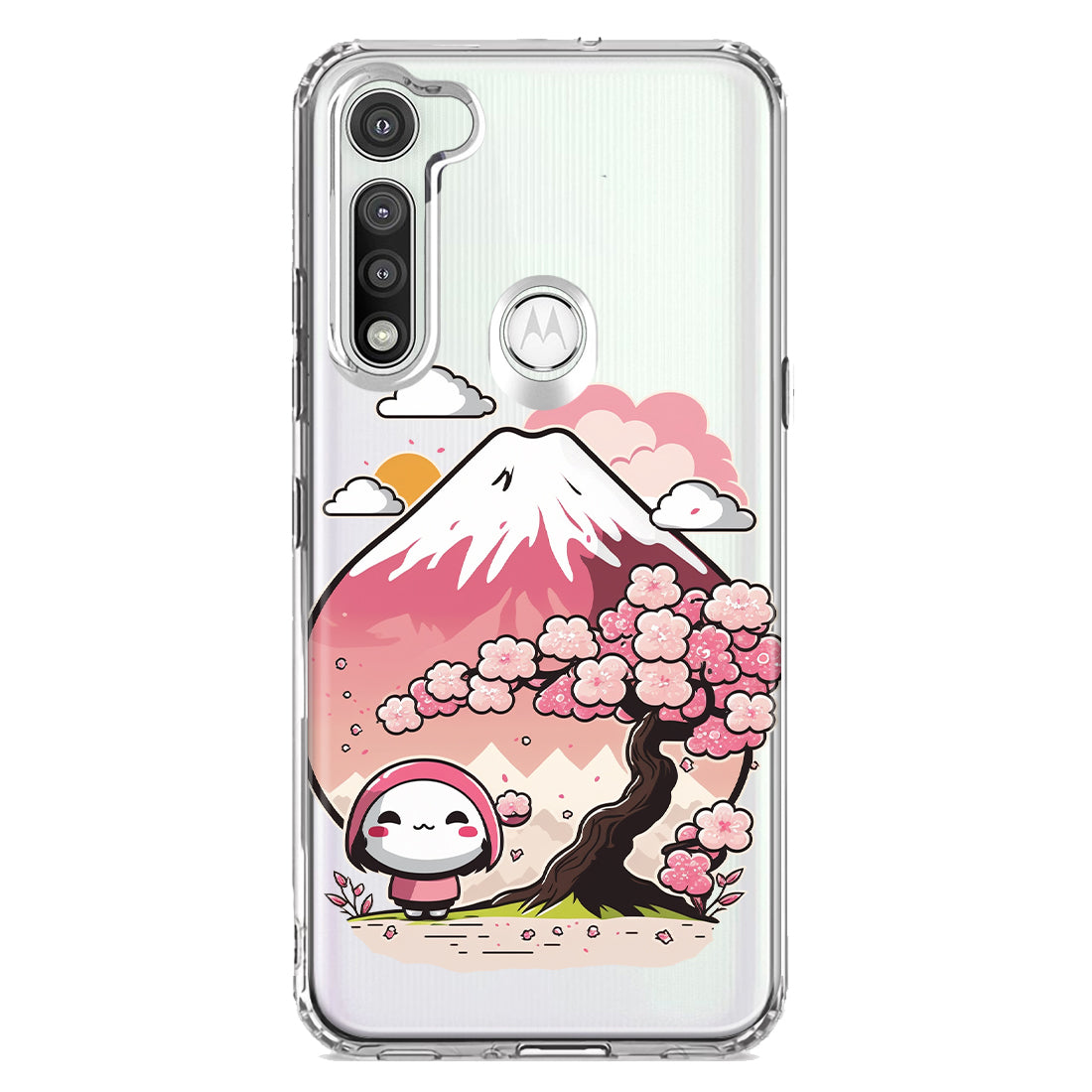 For Motorola Moto G Fast Kawaii Manga Pink Cherry Blossom Fuji Mountain Mochi Girl Hybrid Protective Phone Case Cover