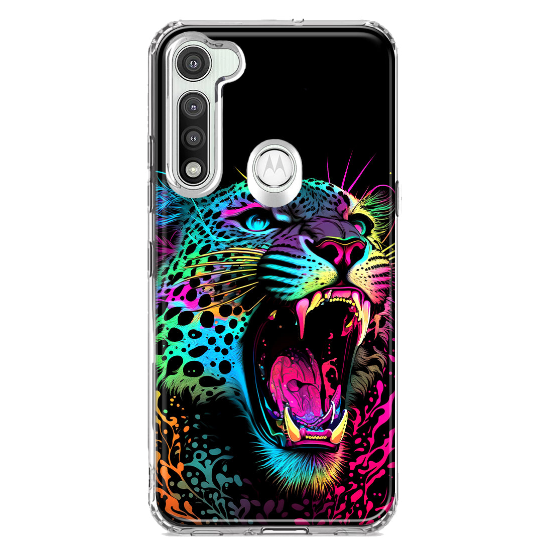 For Motorola Moto G Fast Neon Rainbow Glow Colorful Leopard Hybrid Protective Phone Case Cover