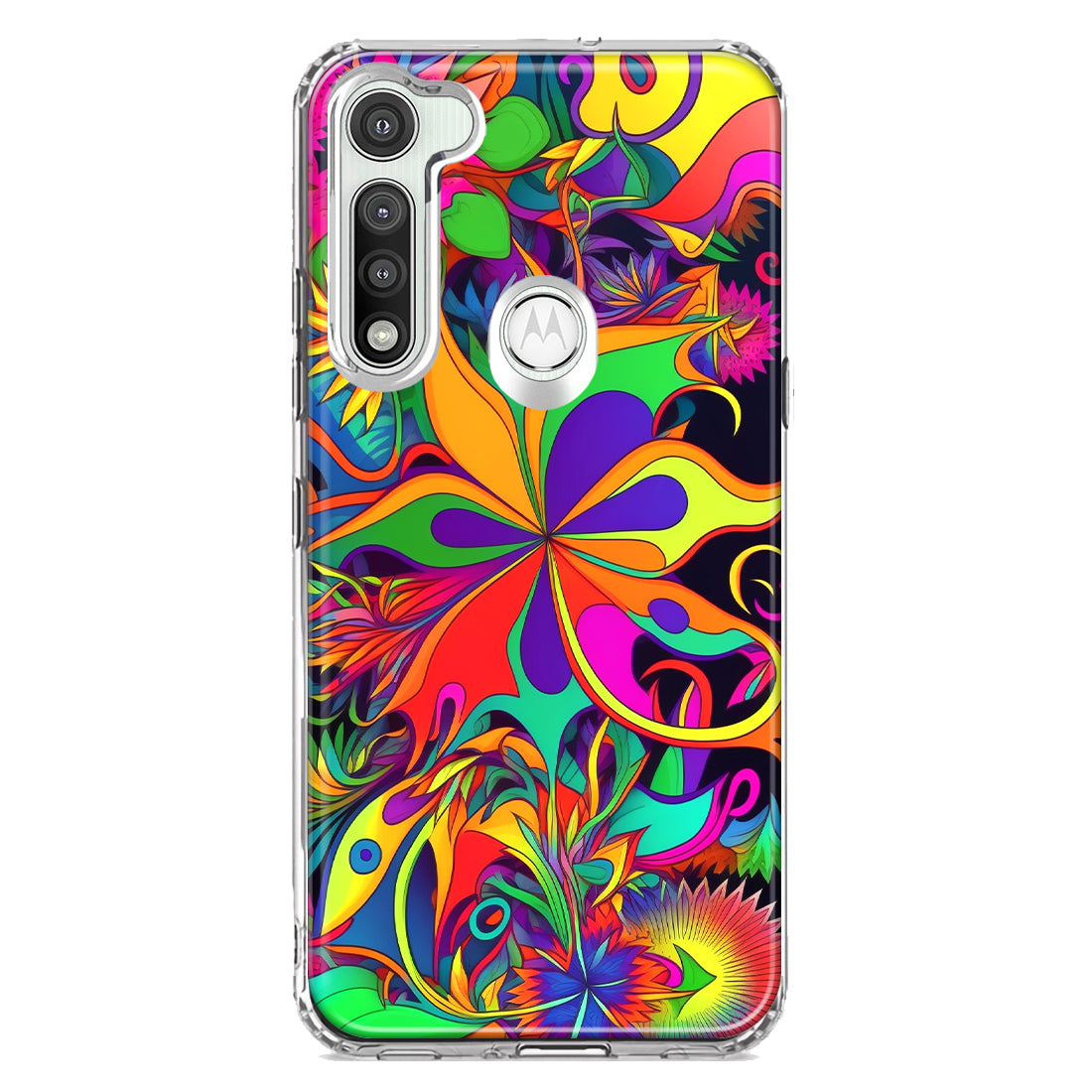 For Motorola Moto G Fast Neon Rainbow Psychedelic Hippie Wild Flowers Hybrid Protective Phone Case Cover