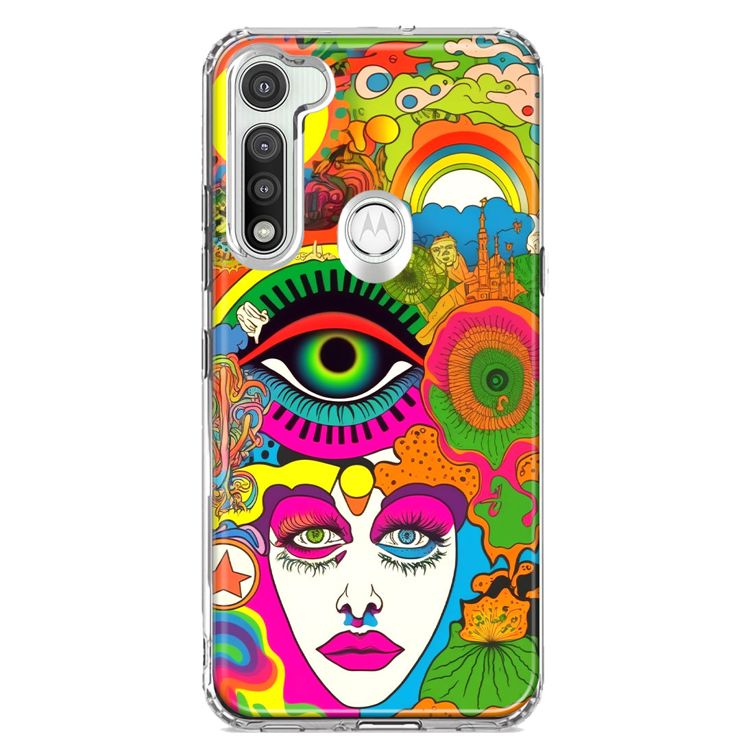 For Motorola Moto G Fast Neon Rainbow Psychedelic Trippy Hippie Daydream Design Hybrid Protective Phone Case Cover
