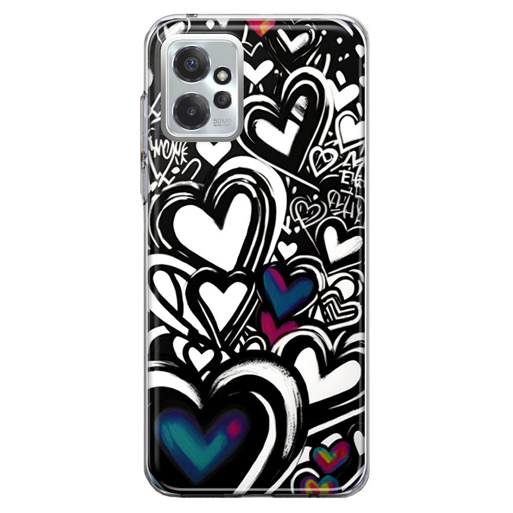 For Motorola Moto G Power 5G 2023 Black White Hearts Love Graffiti Design Hybrid Protective Phone Case Cover