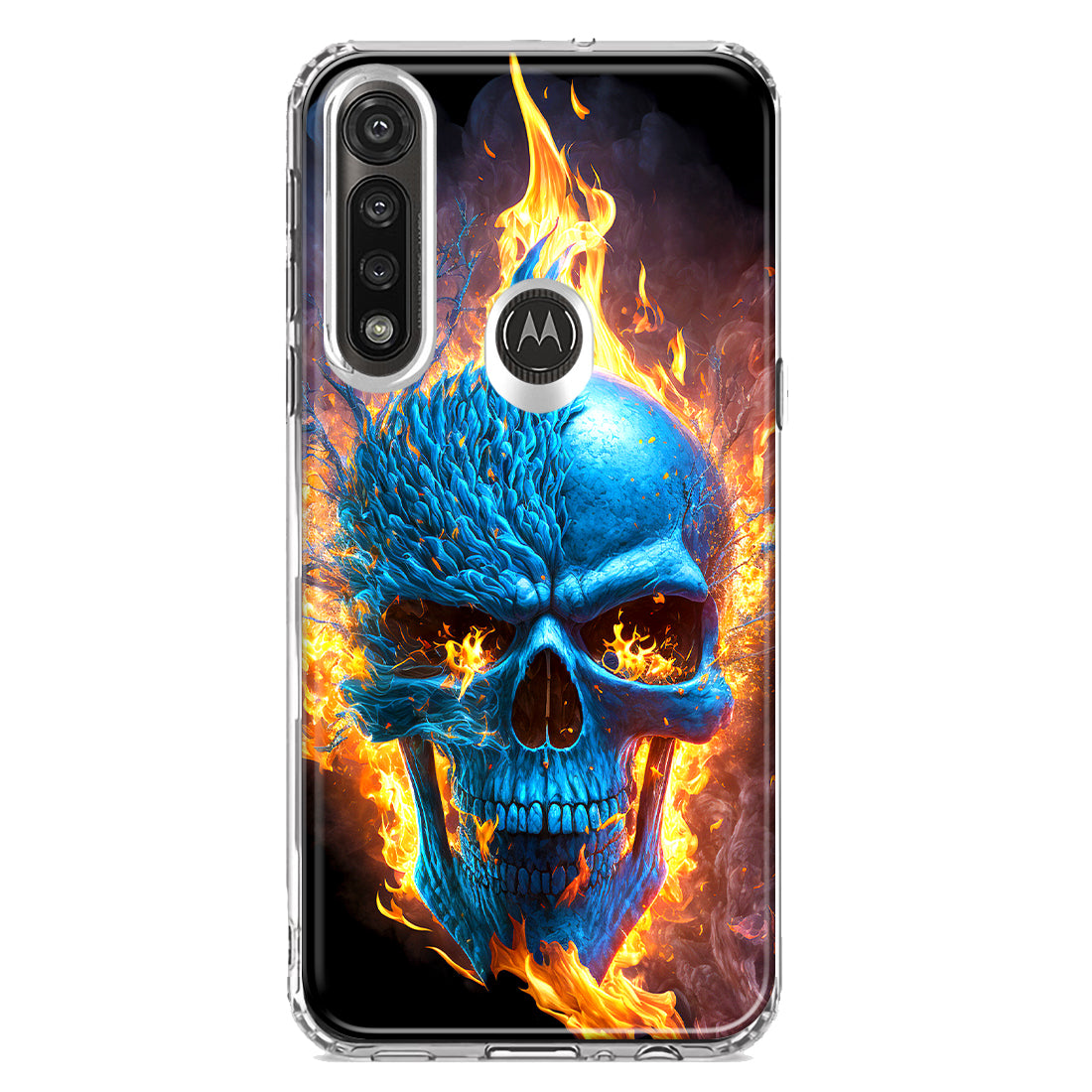For Motorola Moto G Power Blue Flaming Skull Burning Fire Double Layer Phone Case Cover