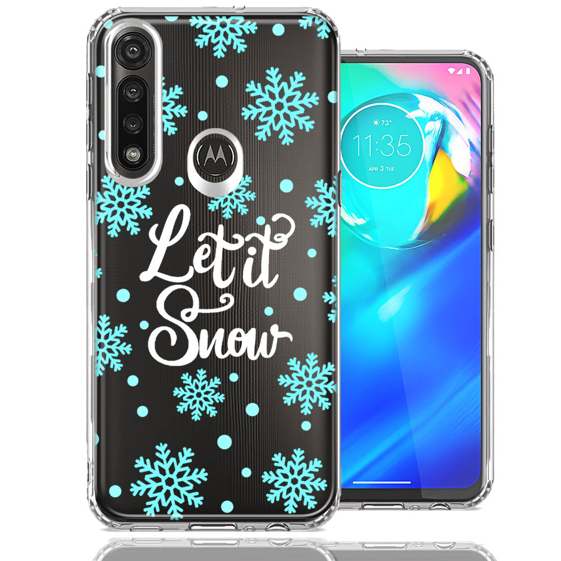 For Motorola Moto G Power Christmas Holiday Let It Snow Winter Blue Snowflakes Design Double Layer Phone Case Cover