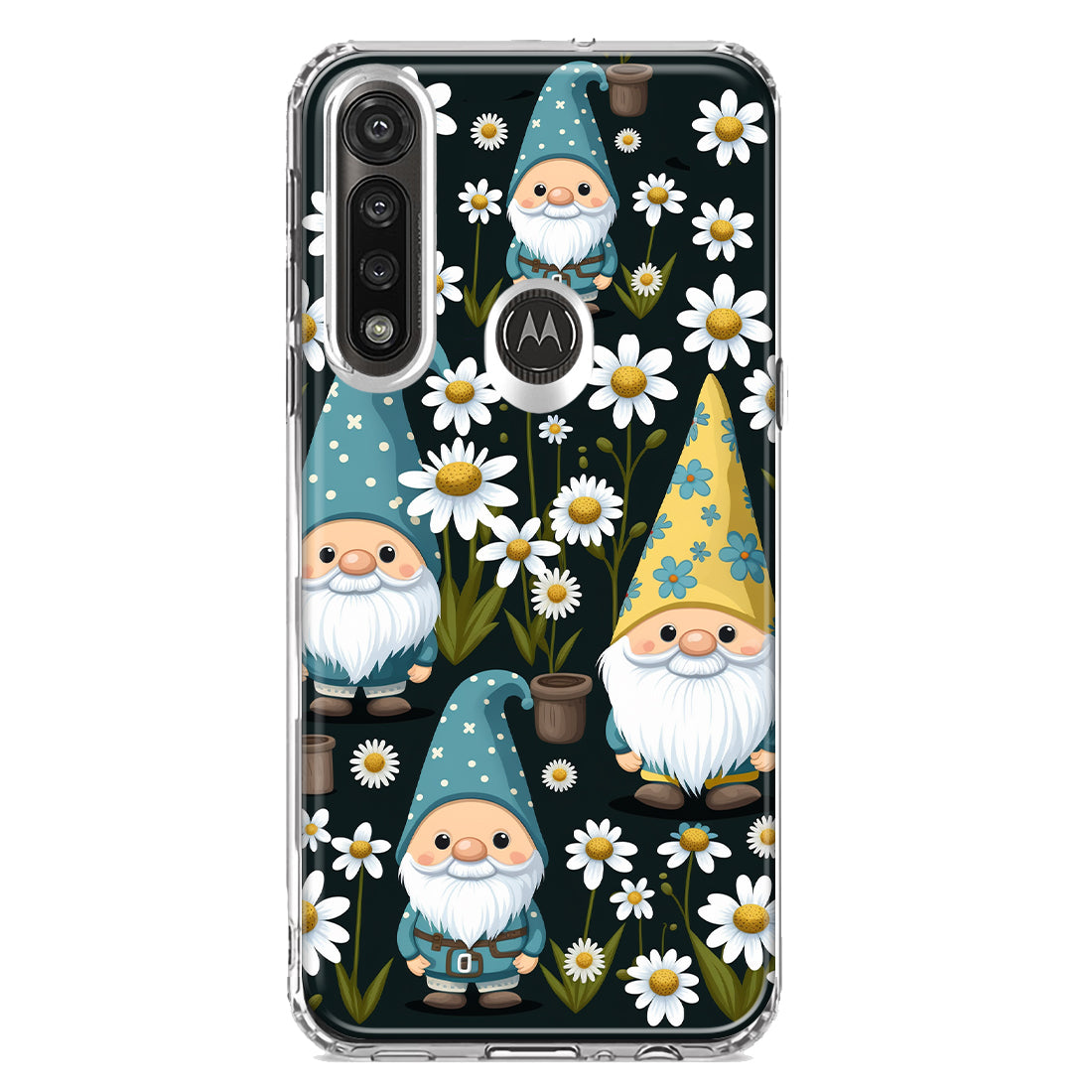 For Motorola Moto G Power Cute White Daisies Gnomes Flowers Floral Double Layer Phone Case Cover