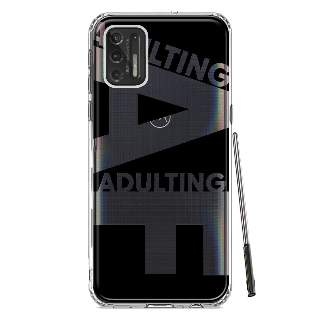 For Motorola Moto G Stylus 2021 Black Clear Funny Text Quote Adulting AF Design Hybrid Protective Phone Case Cover