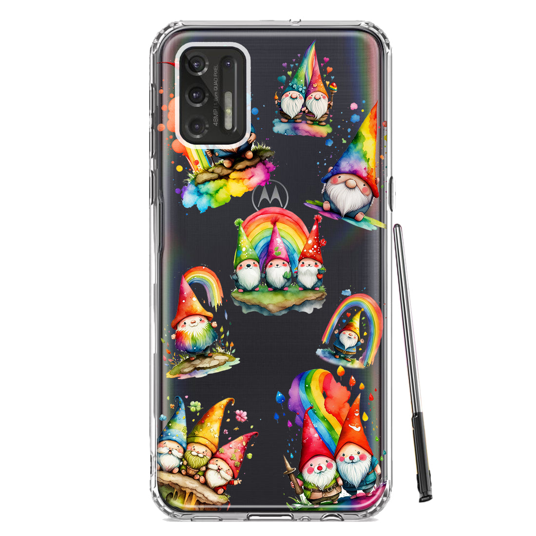 For Motorola Moto G Stylus 2021 Colorful Neon Glow Rainbow Gnomes Painting Hybrid Protective Phone Case Cover