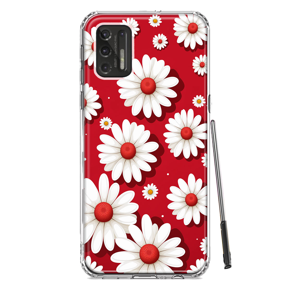 For Motorola Moto G Stylus 2021 Cute White Red Daisies Polkadots Double Layer Phone Case Cover