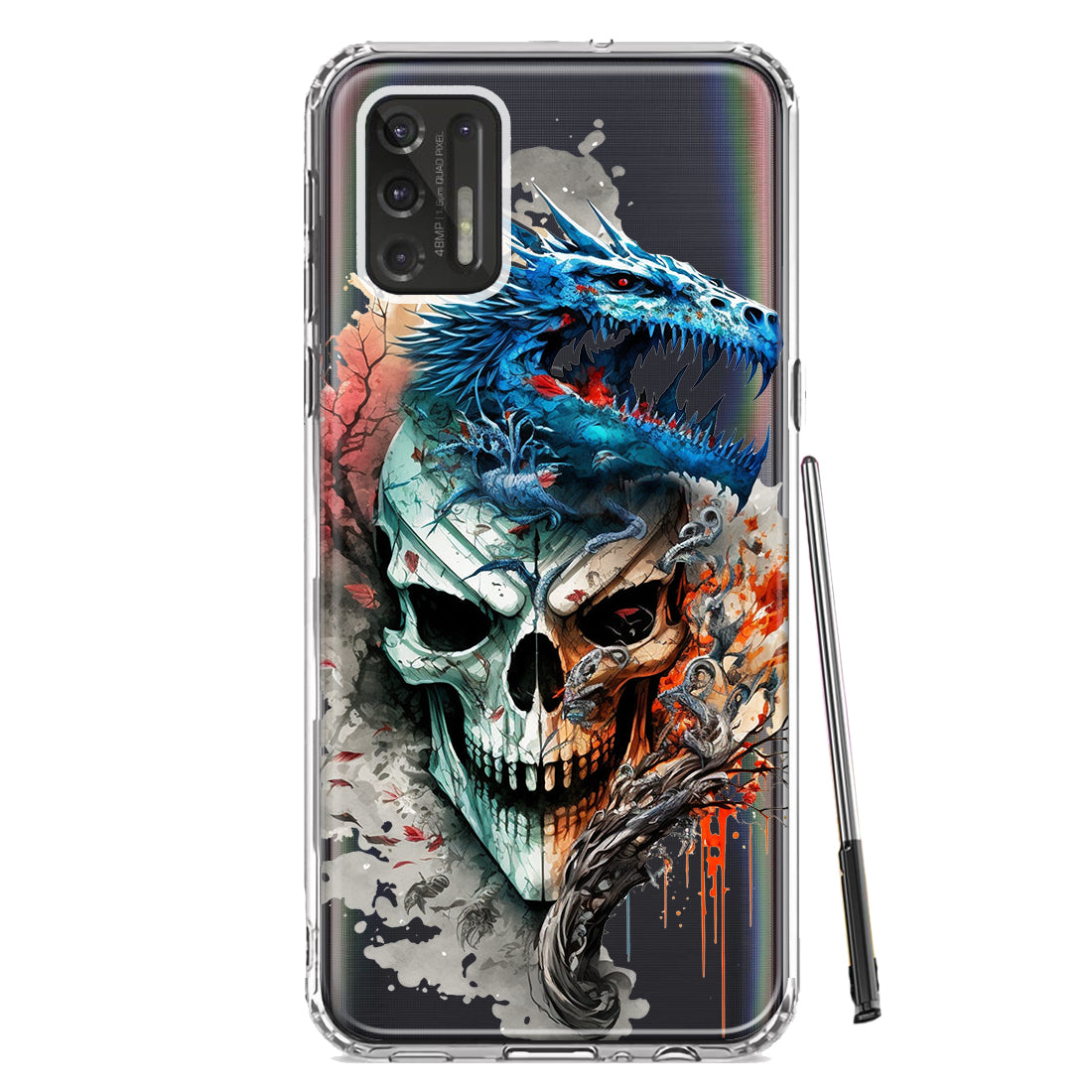For Motorola Moto G Stylus 2021 Fantasy Blue Dragon Dream Skull Double Layer Phone Case Cover