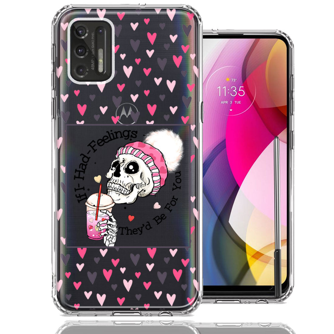 For Motorola Moto G Stylus 2021 Pink Dead Valentine Skull Frap Hearts If I had Feelings They'd Be For You Love Double Layer Phone Case Cover