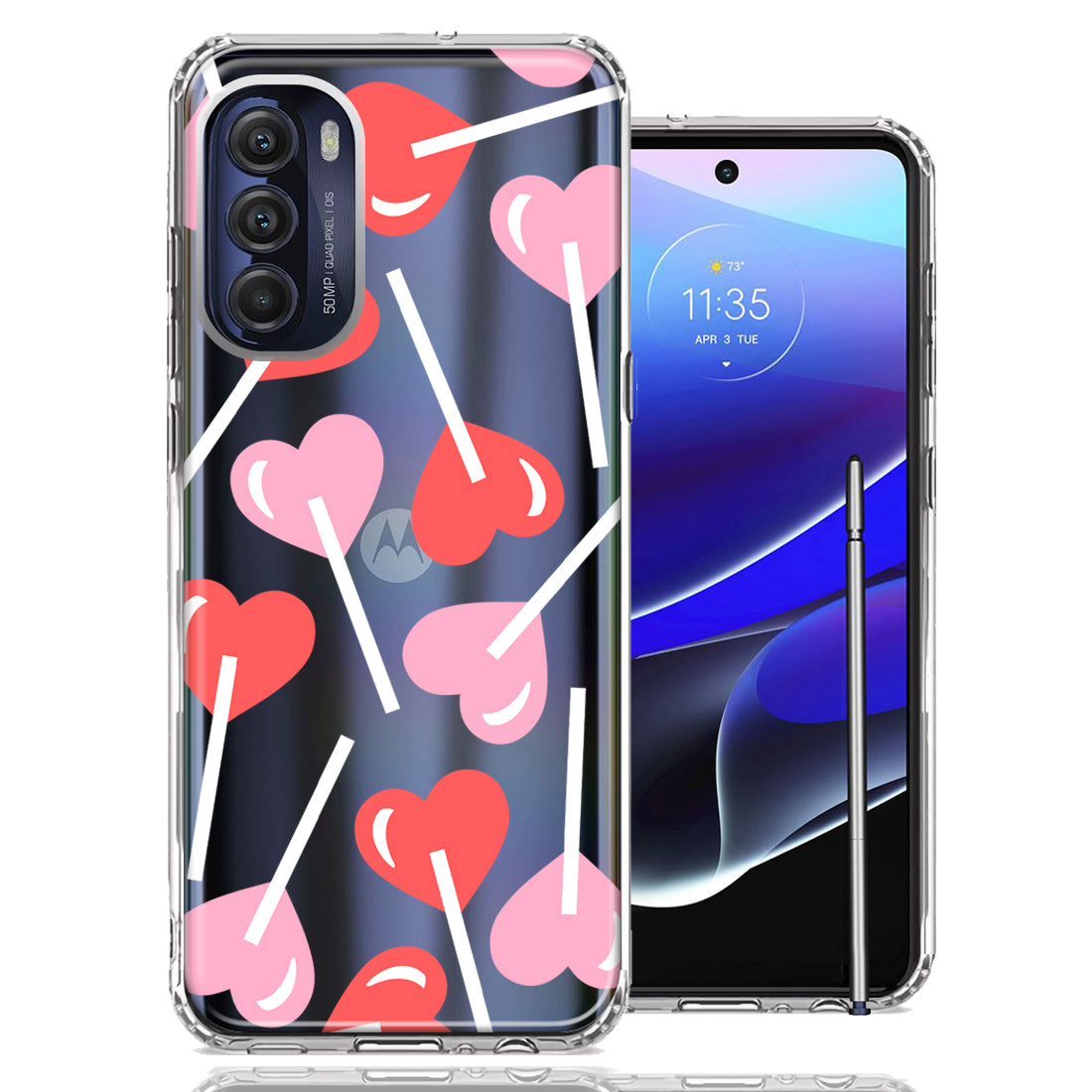 For Motorola Moto G Stylus 4G 2022 Heart Suckers Lollipop Valentines Day Candy Lovers Double Layer Phone Case Cover