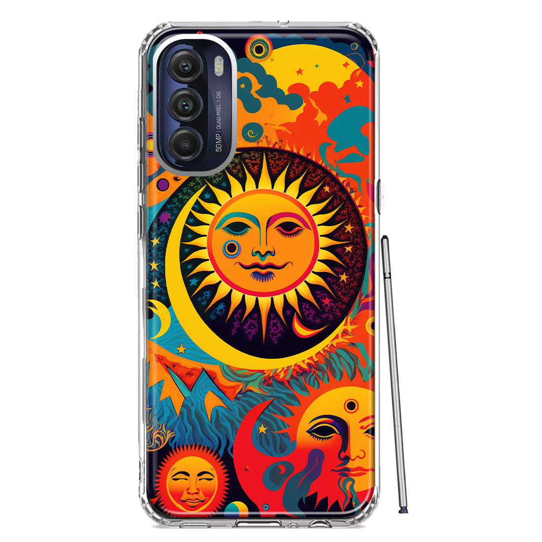 For Motorola Moto G Stylus 4G 2022 Neon Rainbow Psychedelic Indie Hippie Sun Moon Hybrid Protective Phone Case Cover
