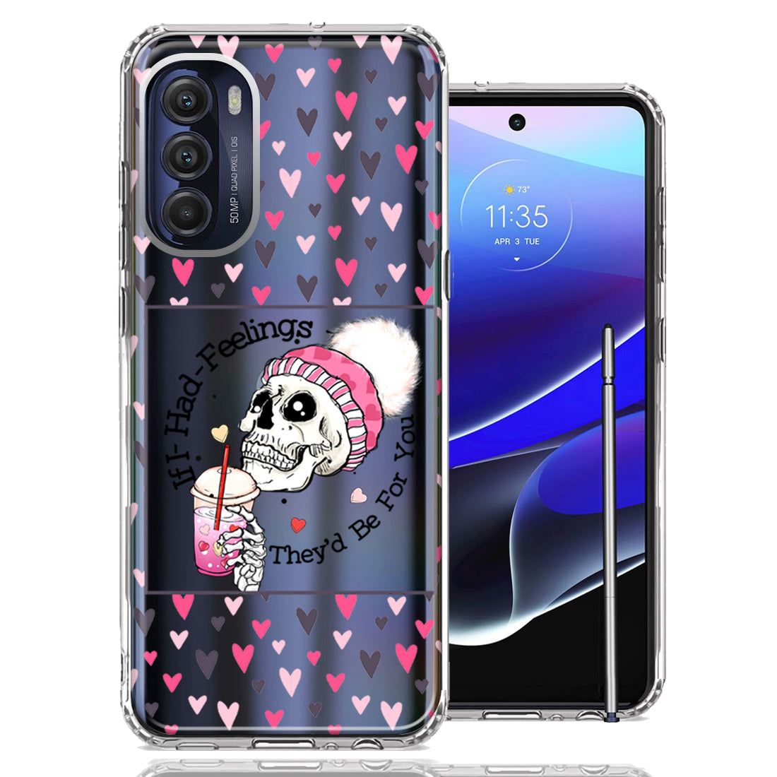 For Motorola Moto G Stylus 4G 2022 Pink Dead Valentine Skull Frap Hearts If I had Feelings They'd Be For You Love Double Layer Phone Case Cover