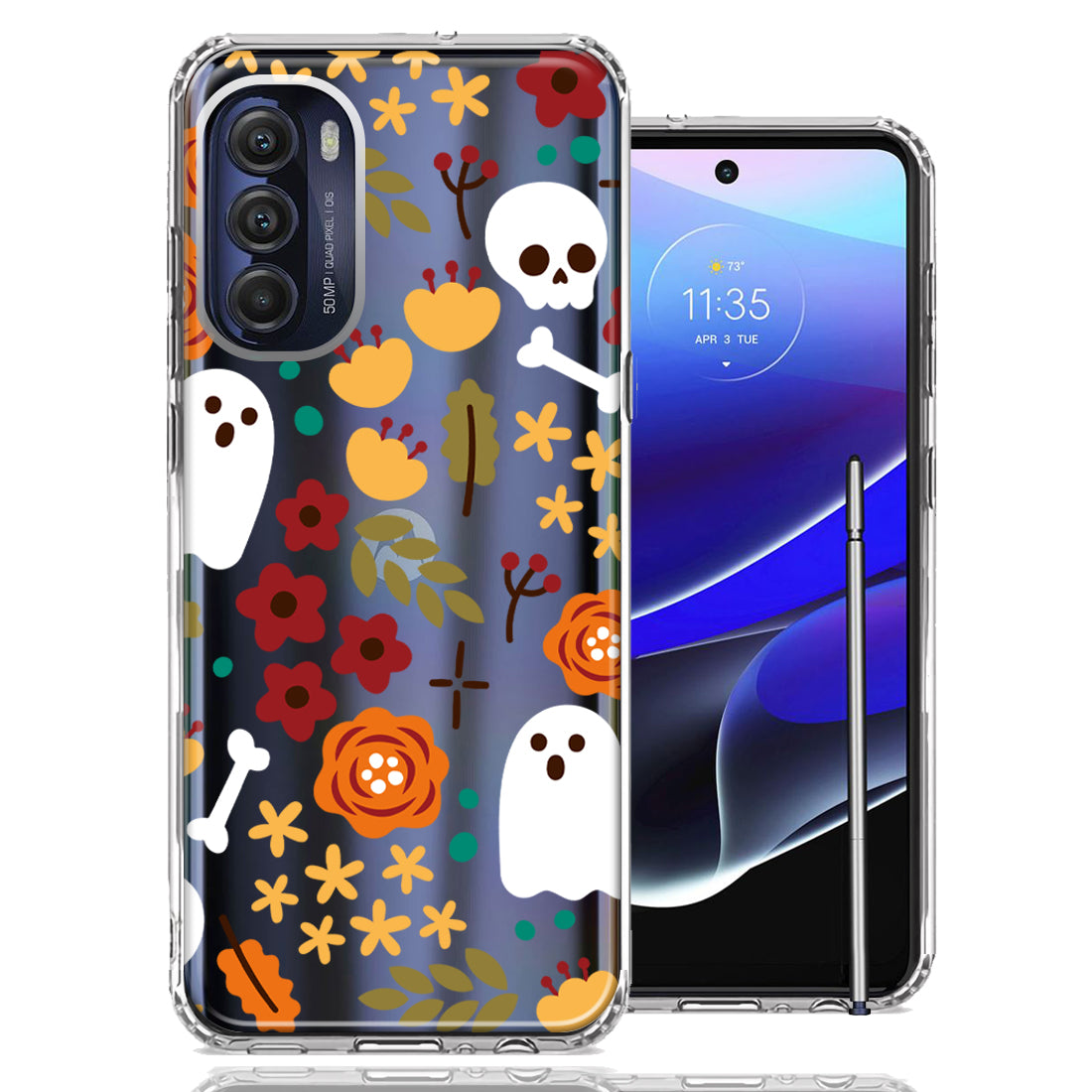 For Motorola Moto G Stylus 4G 2022 Spooky Season Fall Autumn Flowers Ghosts Skulls Halloween Double Layer Phone Case Cover