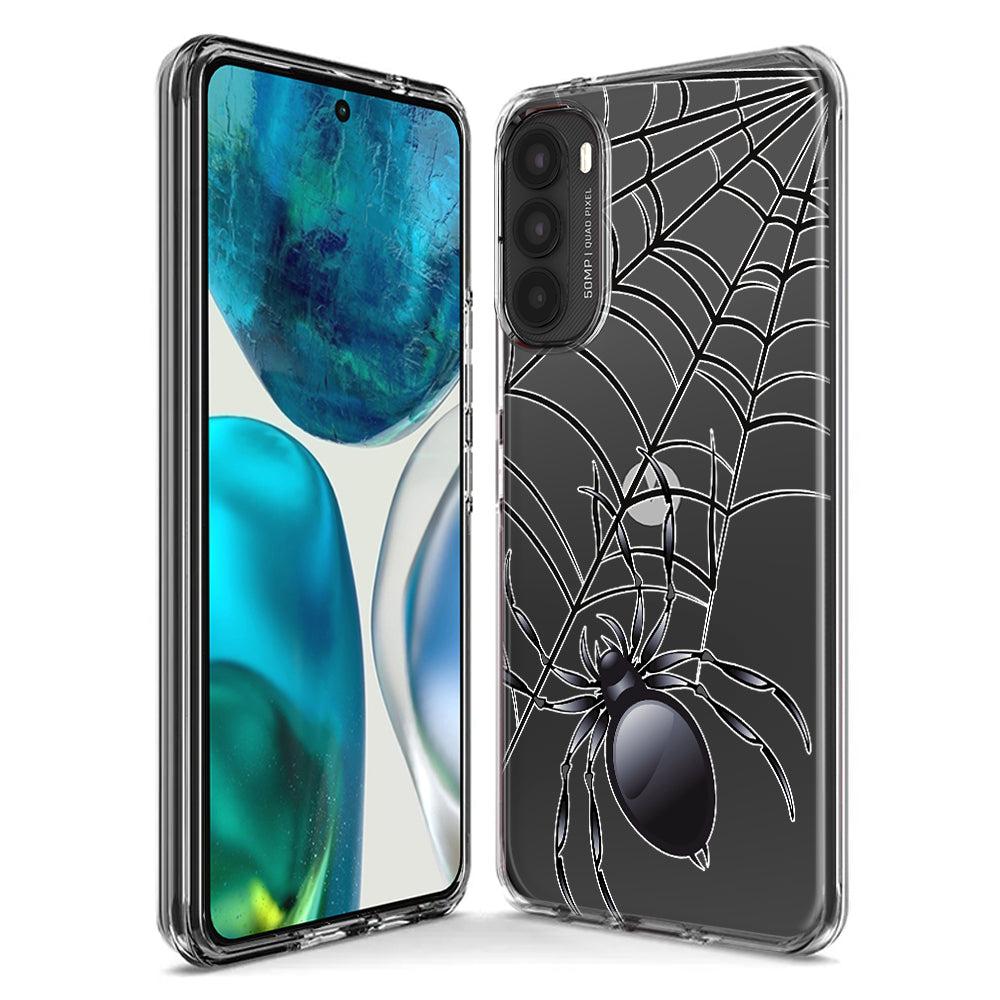 For Motorola Moto G Stylus 5G 2023 Creepy Black Spider Web Halloween Horror Spooky Design Hybrid Protective Phone Case Cover