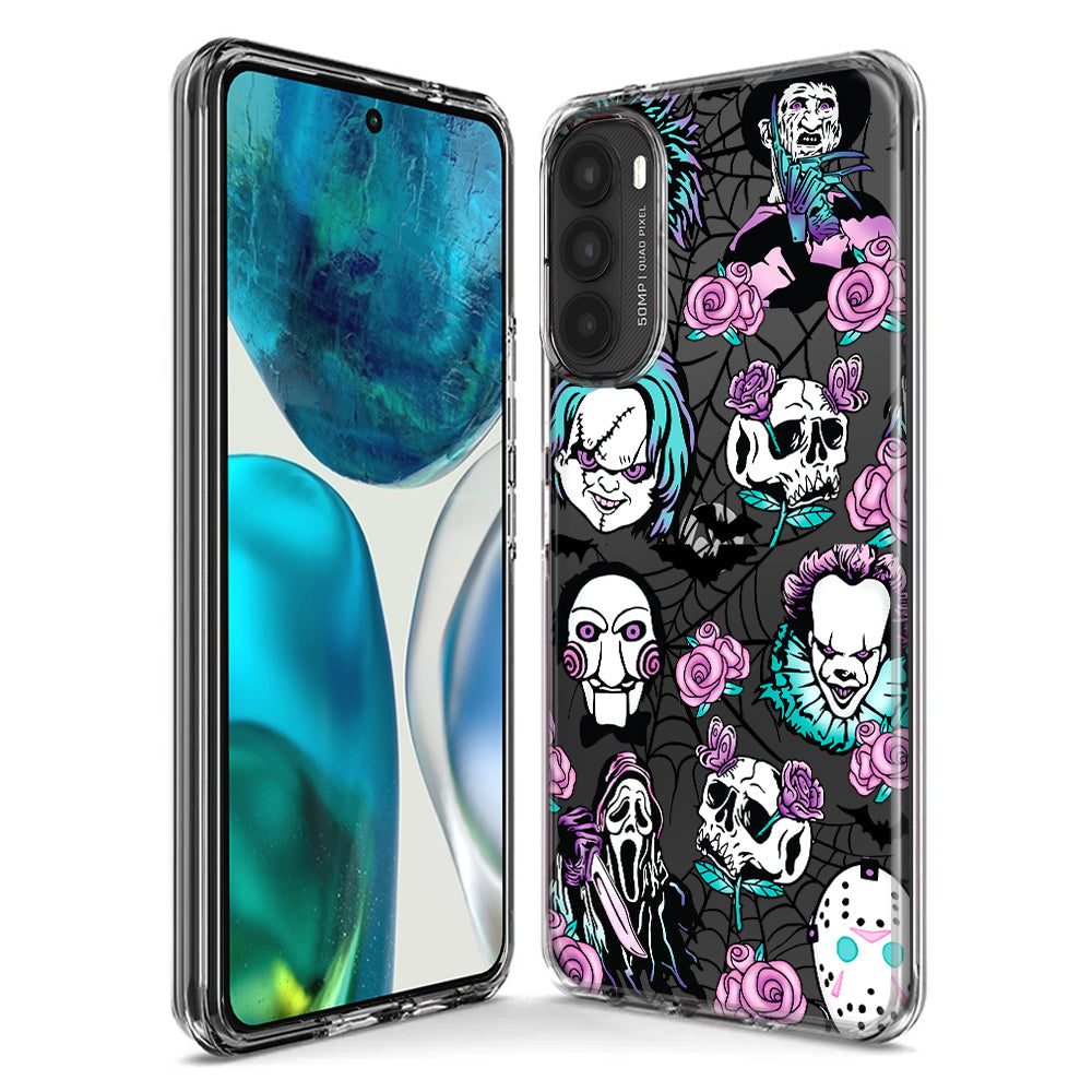 For Motorola Moto G Stylus 5G 2023 Roses Halloween Spooky Horror Characters Spider Web Design Hybrid Protective Phone Case Cover