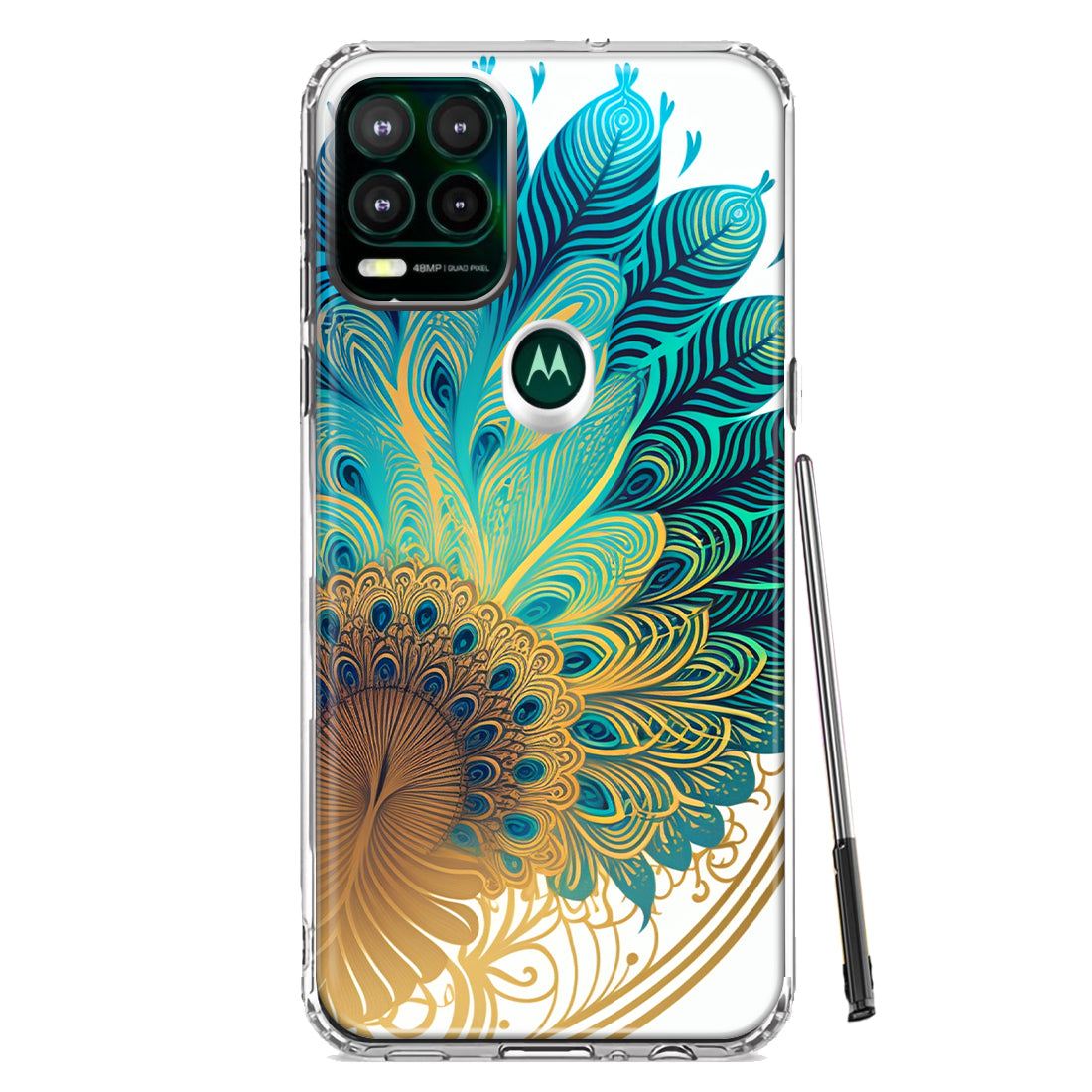 For Motorola Moto G Stylus 5G Mandala Geometry Abstract Peacock Feather Pattern Design Hybrid Protective Phone Case Cover