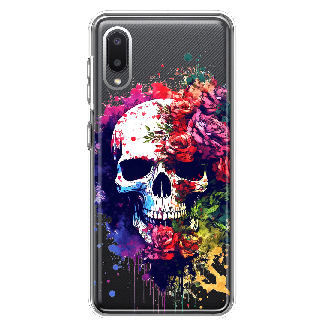 For Samsung Galaxy A02 Fantasy Skull Red Purple Roses Design Hybrid Protective Phone Case Cover