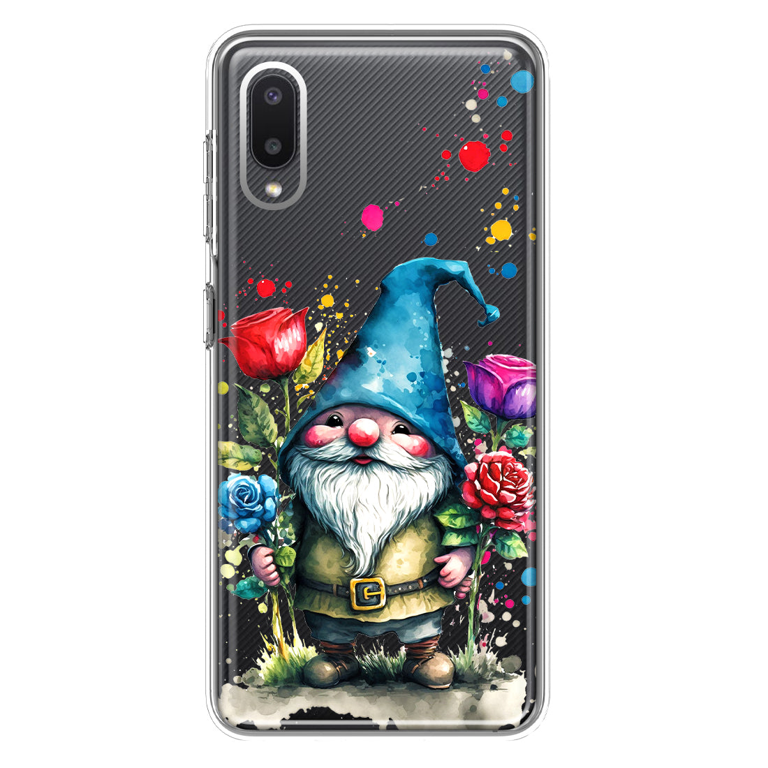 For Samsung Galaxy A02 Gnome Red Purple Blue Roses Garden Design Hybrid Protective Phone Case Cover