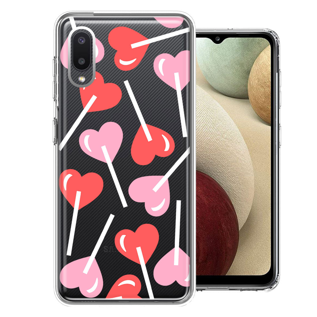 For Samsung Galaxy A02 Heart Suckers Lollipop Valentines Day Candy Lovers Double Layer Phone Case Cover