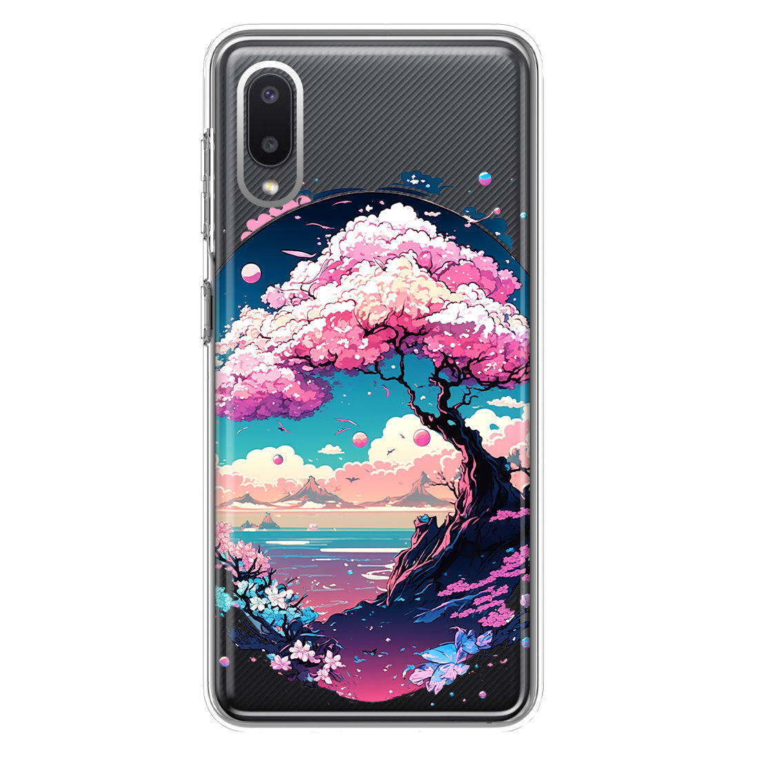 For Samsung Galaxy A02 Kawaii Manga Pink Cherry Blossom Japanese Sky Floral Ocean Hybrid Protective Phone Case Cover