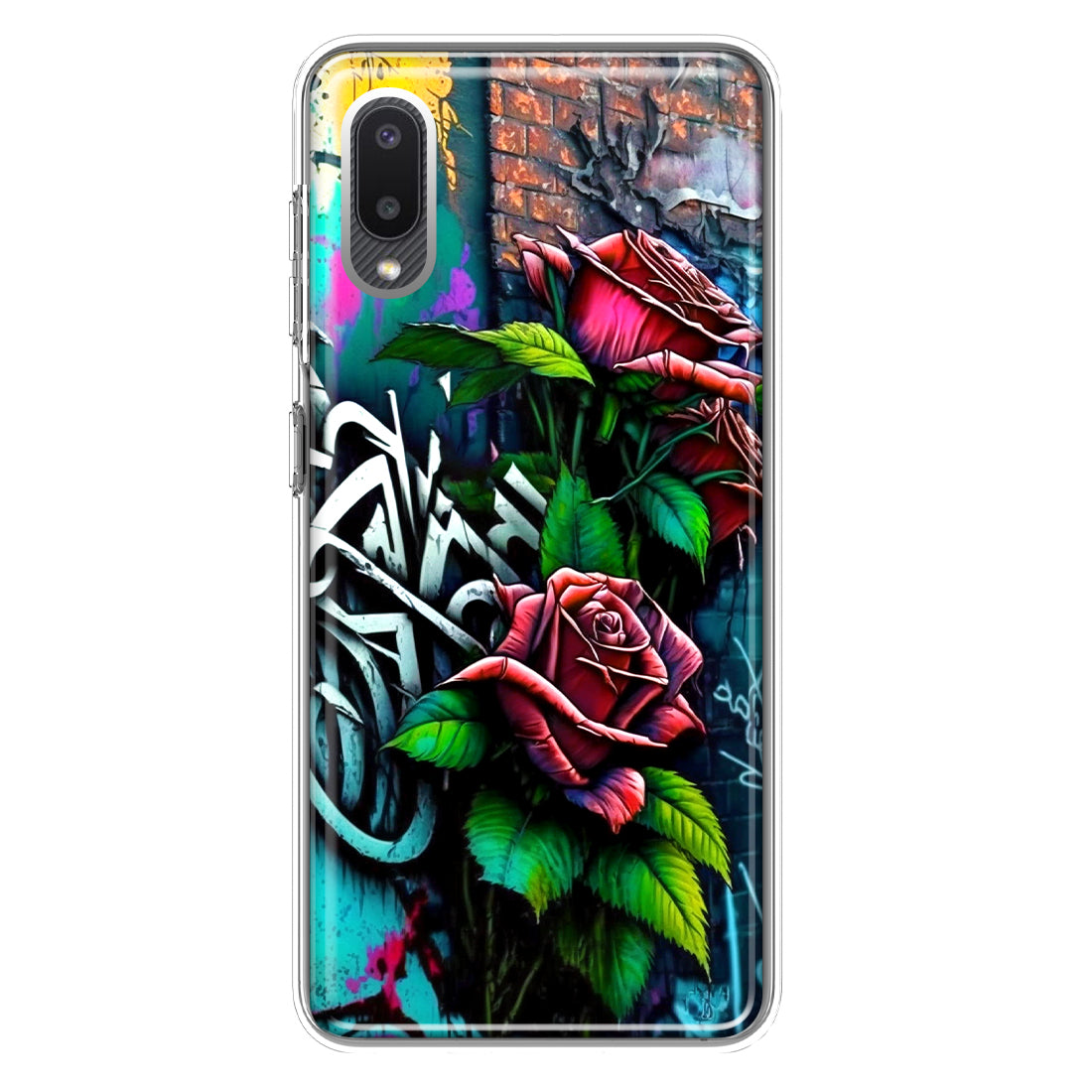 For Samsung Galaxy A02 Red Roses Graffiti Painting Art Design Hybrid Protective Phone Case Cover