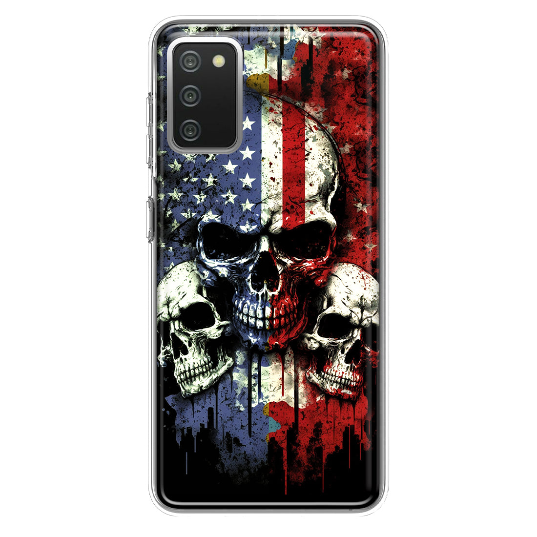 For Samsung Galaxy A02S American USA Flag Skulls Blue Red Double Layer Phone Case Cover