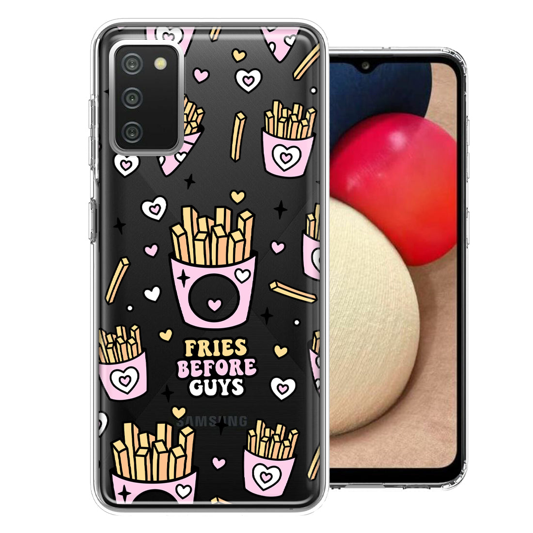 For Samsung Galaxy A02S Cute Valentine Pink Love Hearts Fries Before Guys Double Layer Phone Case Cover