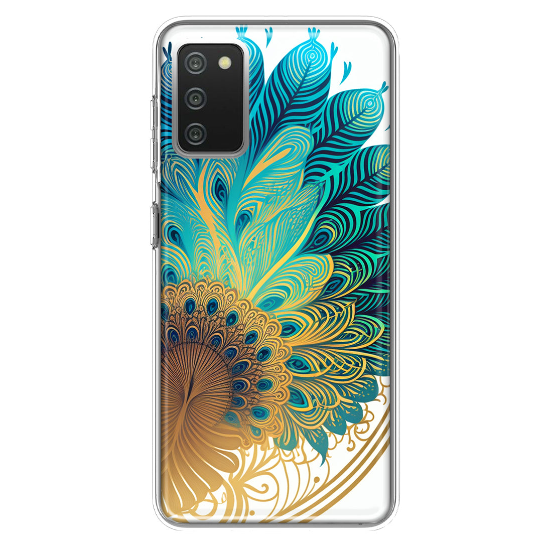 For Samsung Galaxy A02S Mandala Geometry Abstract Peacock Feather Pattern Design Hybrid Protective Phone Case Cover