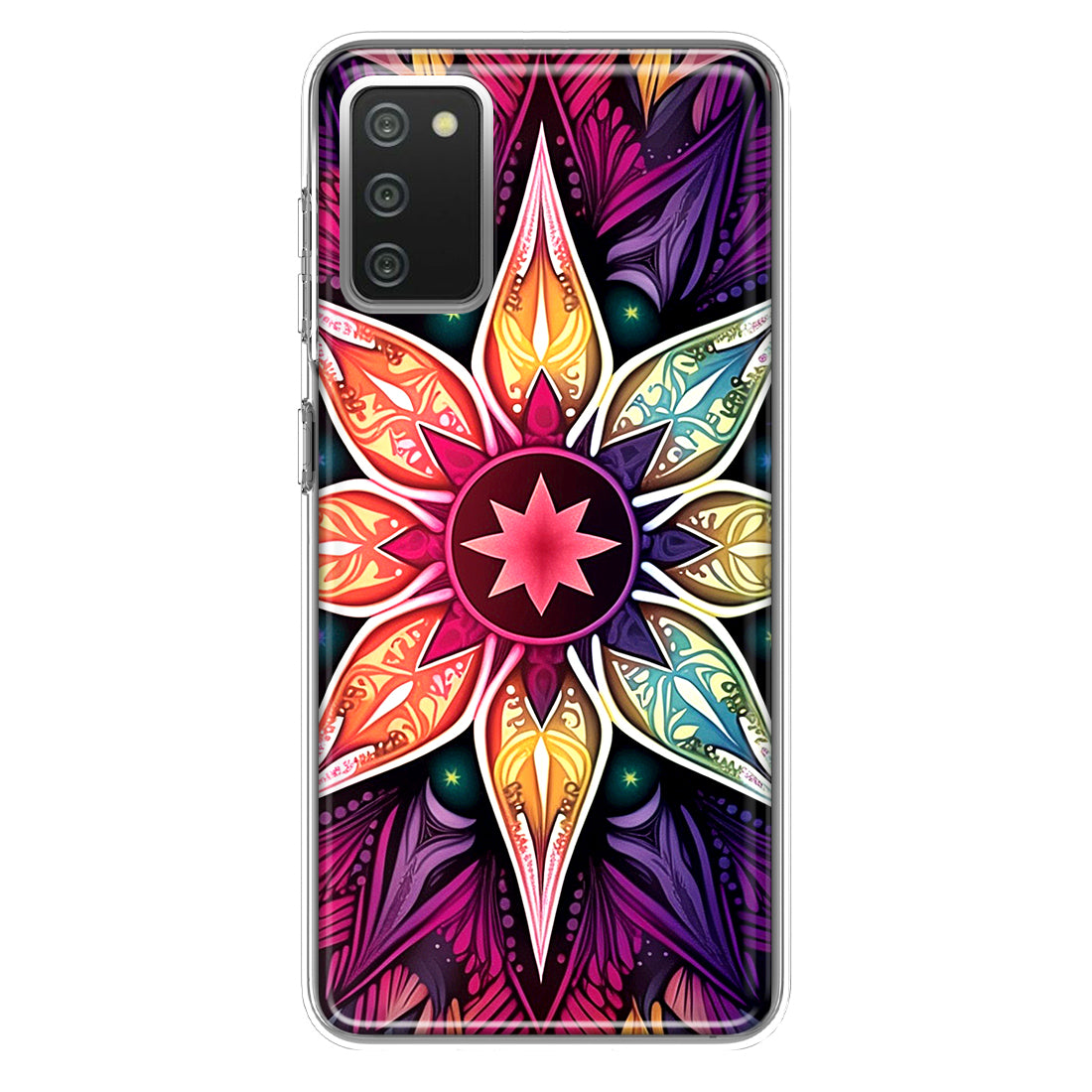 For Samsung Galaxy A02S Mandala Geometry Abstract Star Pattern Design Hybrid Protective Phone Case Cover