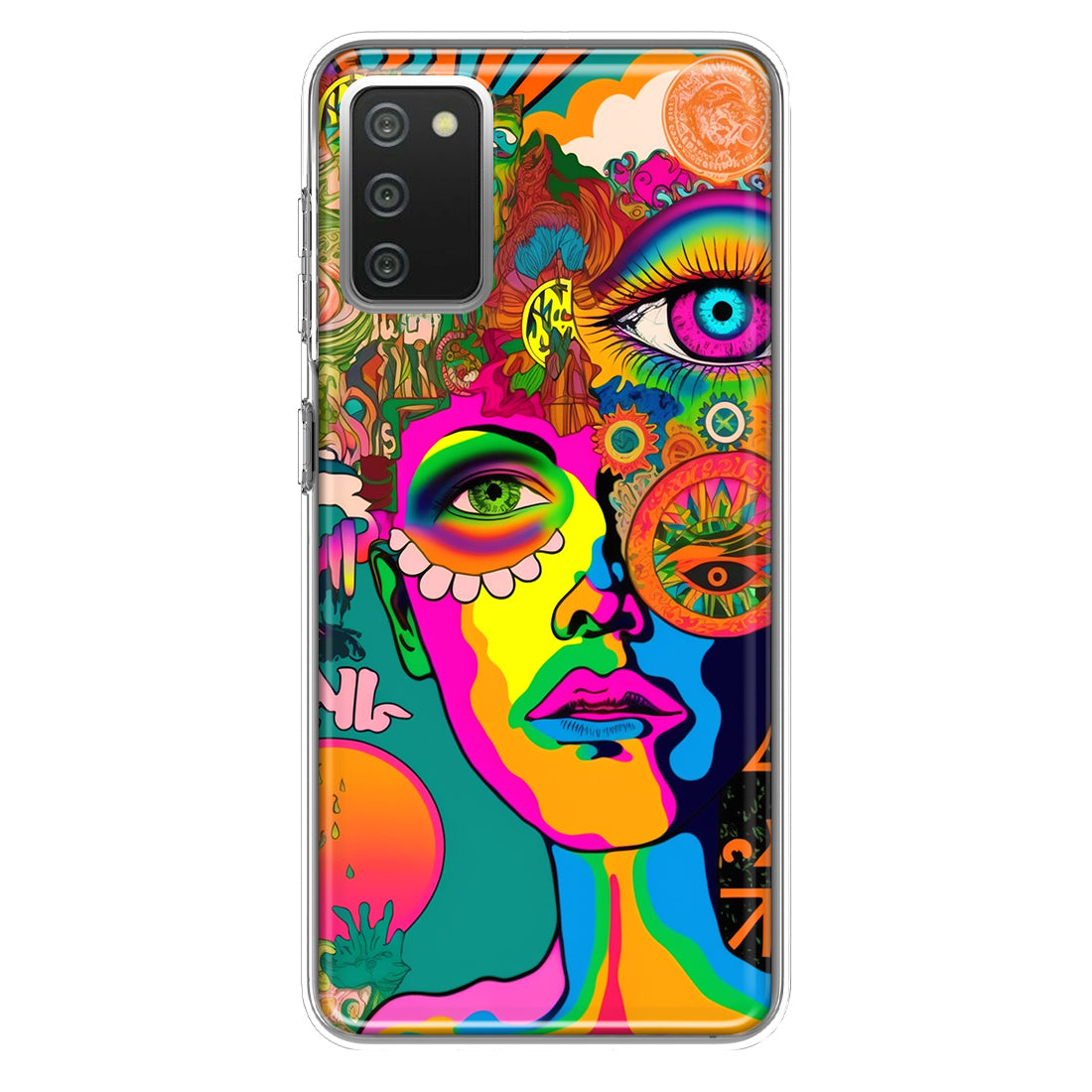 For Samsung Galaxy A02S Neon Rainbow Psychedelic Hippie One Eye Pop Art Hybrid Protective Phone Case Cover