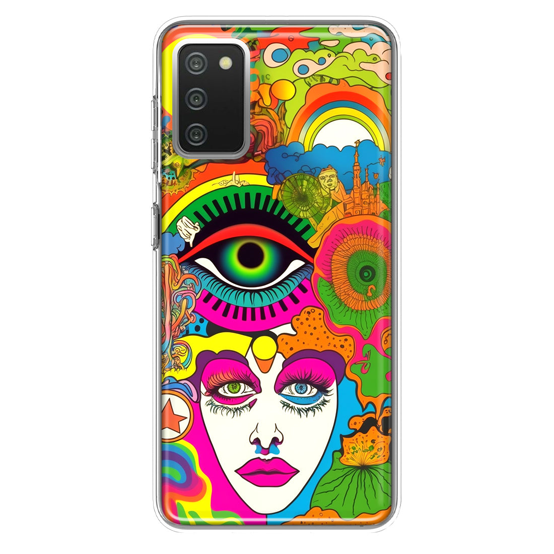 For Samsung Galaxy A02S Neon Rainbow Psychedelic Trippy Hippie Daydream Design Hybrid Protective Phone Case Cover