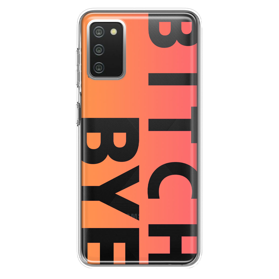 For Samsung Galaxy A02S Peach Orange Clear Funny Text Quote Bitch Bye Design Hybrid Protective Phone Case Cover
