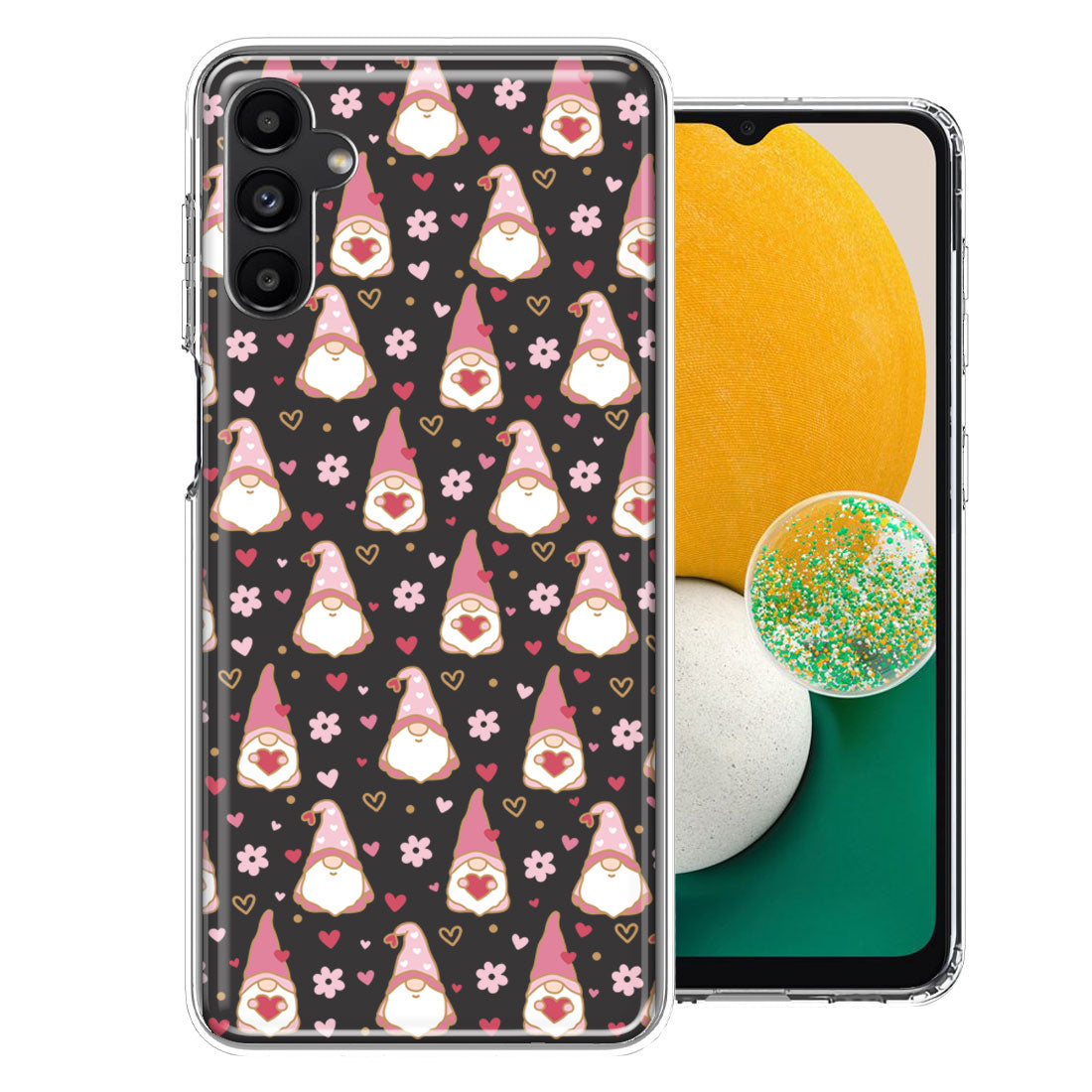 For Samsung Galaxy A13 Pink Blush Valentines Day Flower Hearts Gnome Characters Cute Double Layer Phone Case Cover