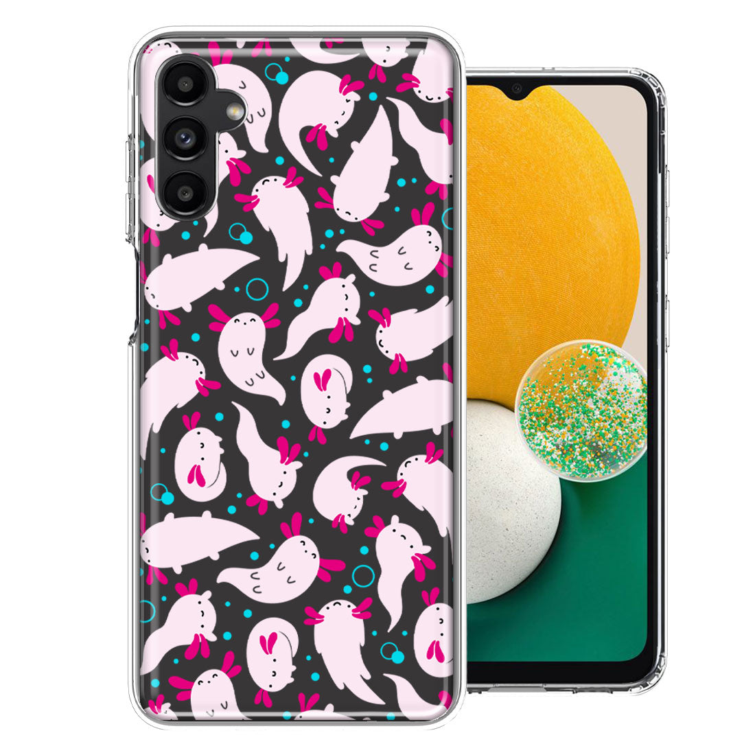 For Samsung Galaxy A13 Pink Happy Swimming Axolotls Polka Dots Double Layer Phone Case Cover