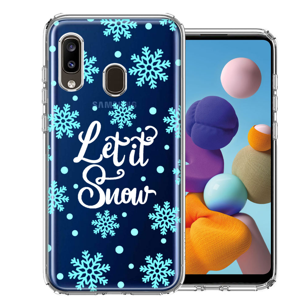 For Samsung Galaxy A20 Christmas Holiday Let It Snow Winter Blue Snowflakes Design Double Layer Phone Case Cover