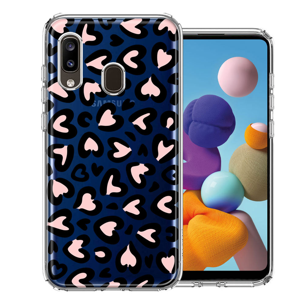 For Samsung Galaxy A20 Cute Pink Leopard Print Hearts Valentines Day Love Double Layer Phone Case Cover