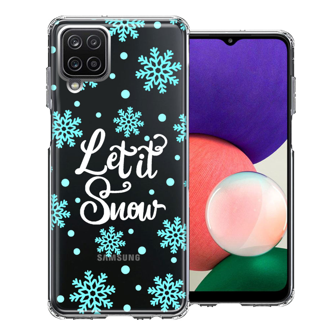 For Samsung Galaxy A22 5G Christmas Holiday Let It Snow Winter Blue Snowflakes Design Double Layer Phone Case Cover