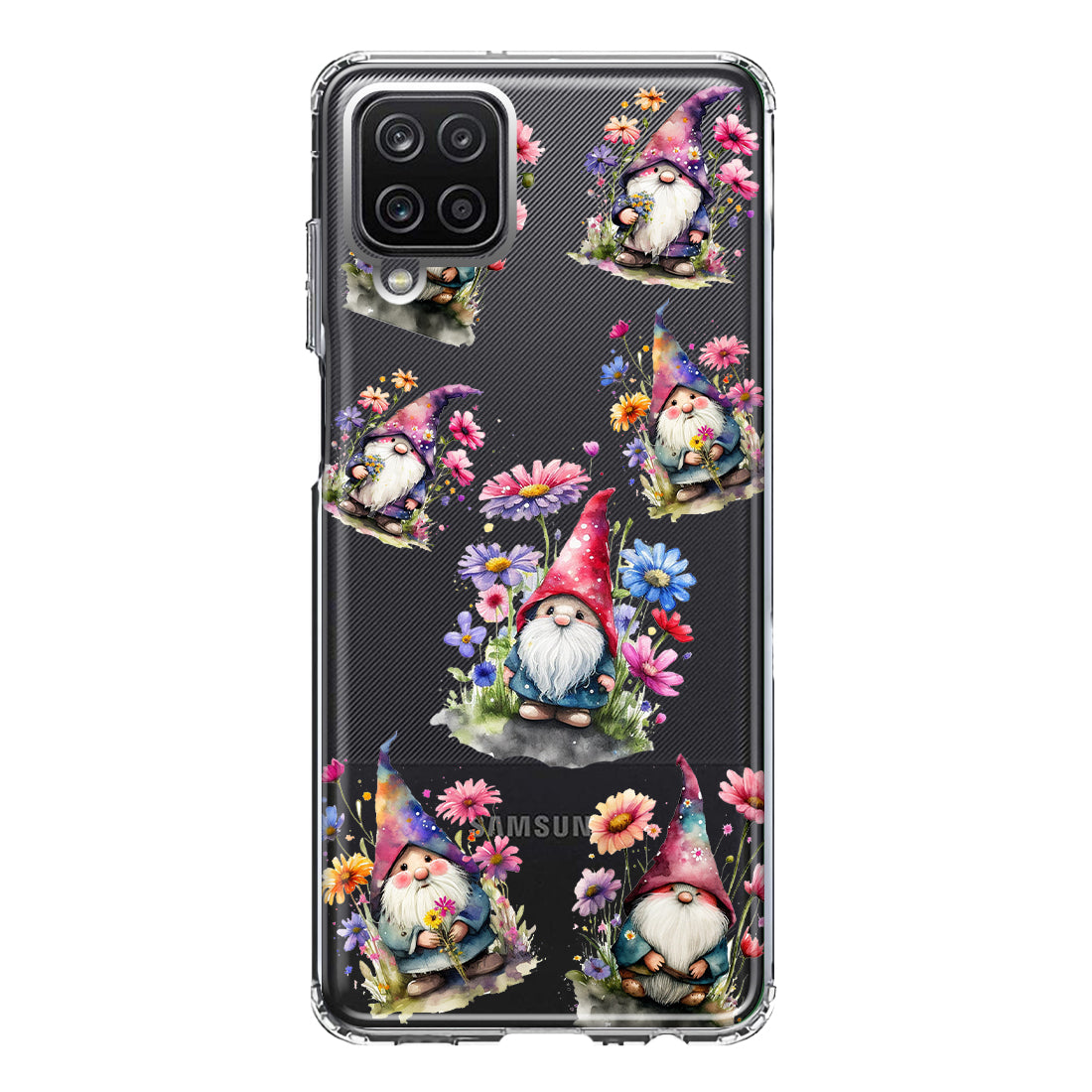 For Samsung Galaxy A22 5G Cute Pink Purple Cosmos Flowers Gnomes Spring Floral Double Layer Phone Case Cover