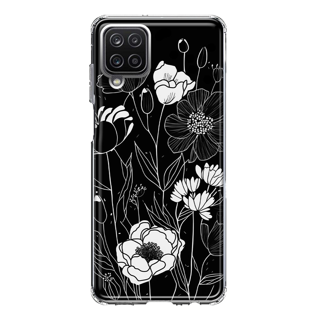For Samsung Galaxy A22 5G Line Drawing Art White Floral Flowers Hybrid Protective Phone Case Cover