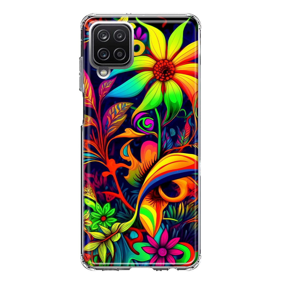 For Samsung Galaxy A22 5G Neon Rainbow Psychedelic Trippy Hippie Daisy Flowers Design Hybrid Protective Phone Case Cover